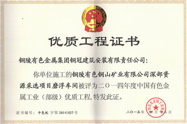 • 銅山磨浮—安裝優(yōu)質(zhì)工程獎(jiǎng)